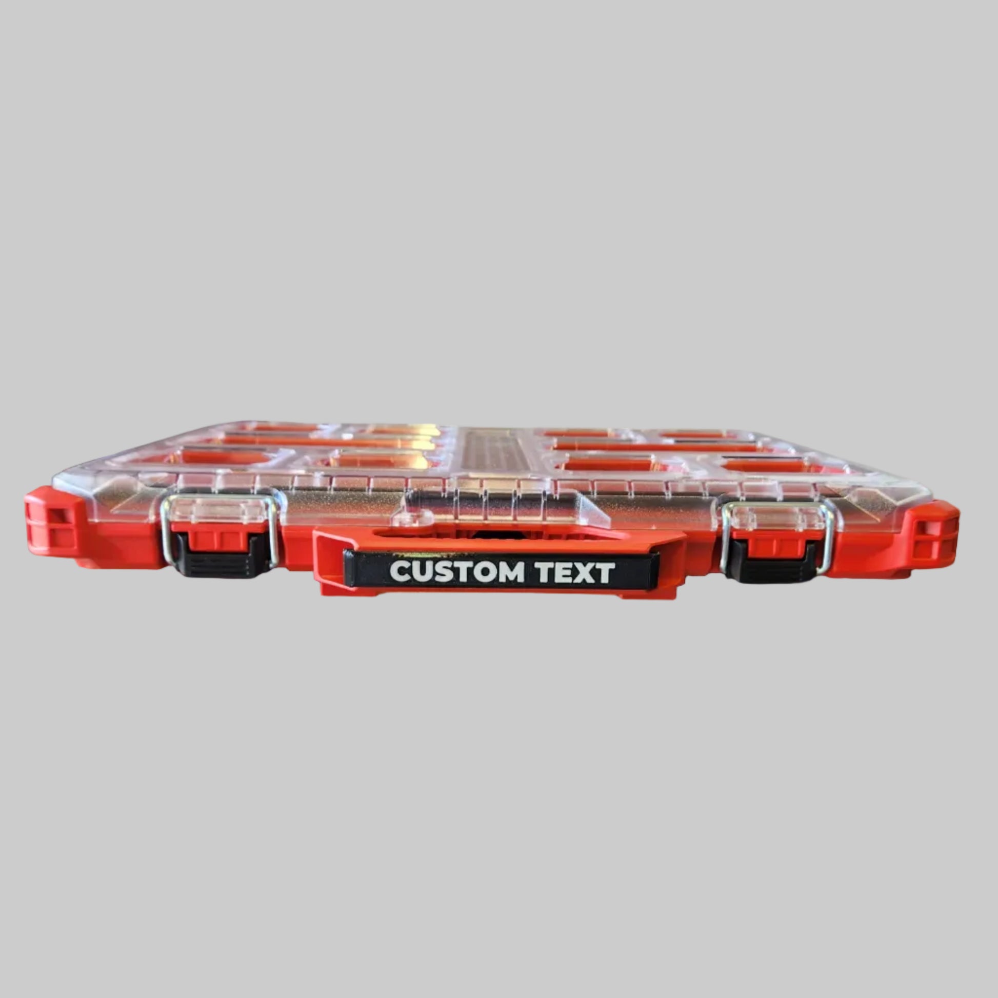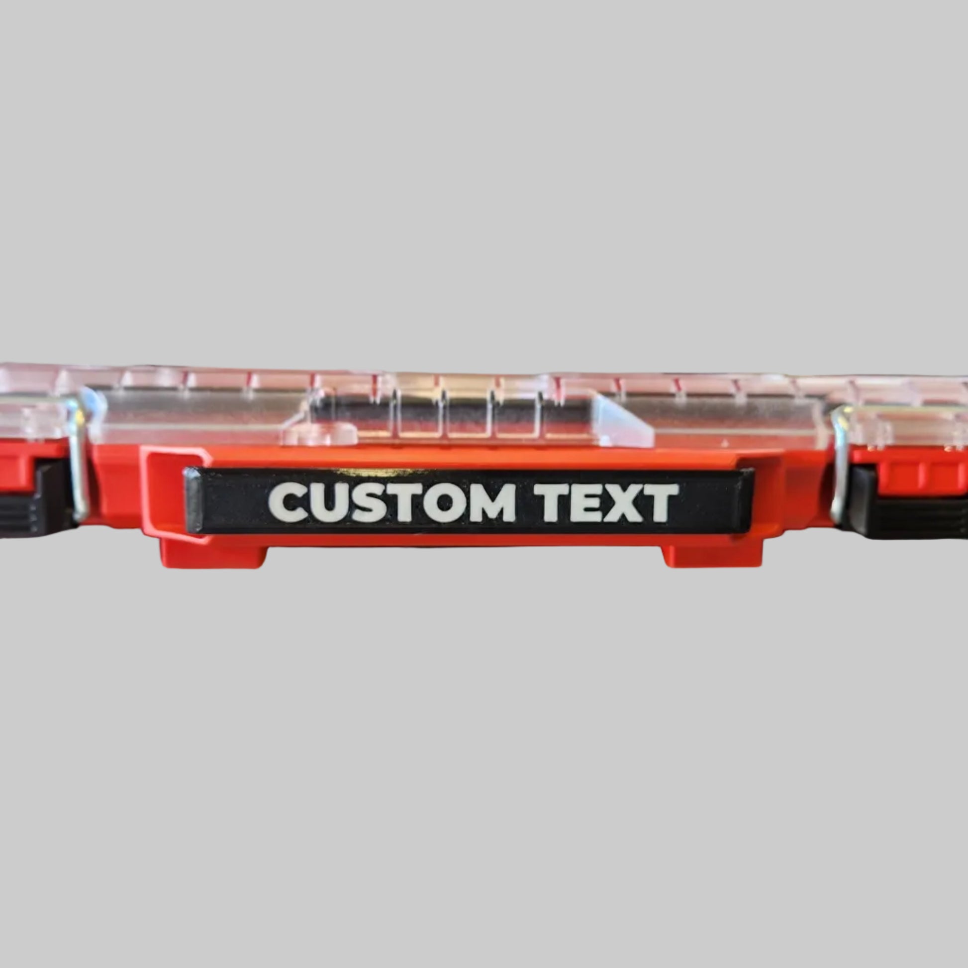 Custom clip-on labels designed to suit Milwaukee® low-profile organisers. 3D-printed in your choice of colours while keeping a clean, factory-style appearance. The labels clip on securely and can be installed or removed easily when required.